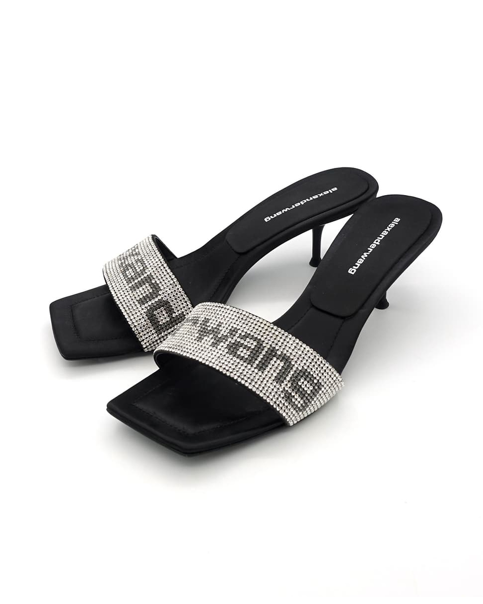 ALEXANDER WANG JESSIE CRYSTAL SLIDE SANDALS HEEL
