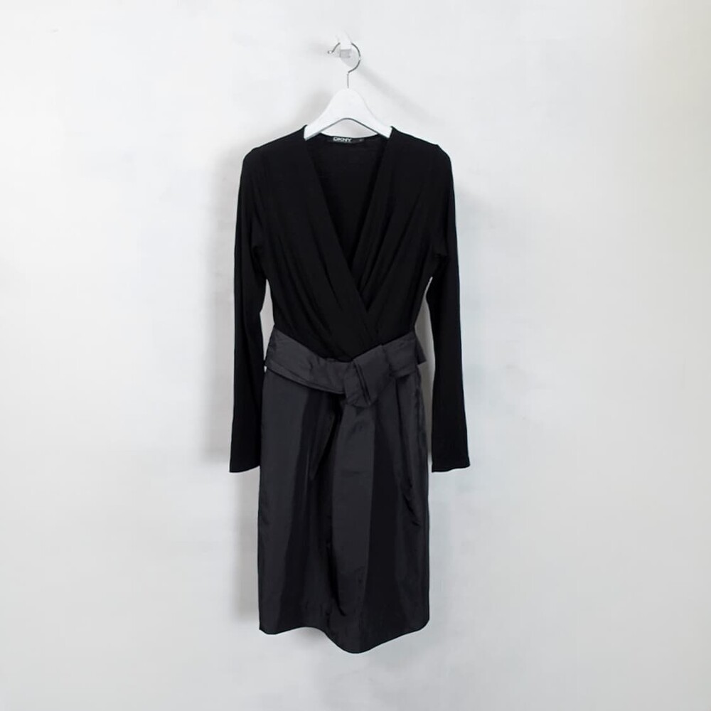 DKNY 블랙 드레이프 롱슬리브 원피스