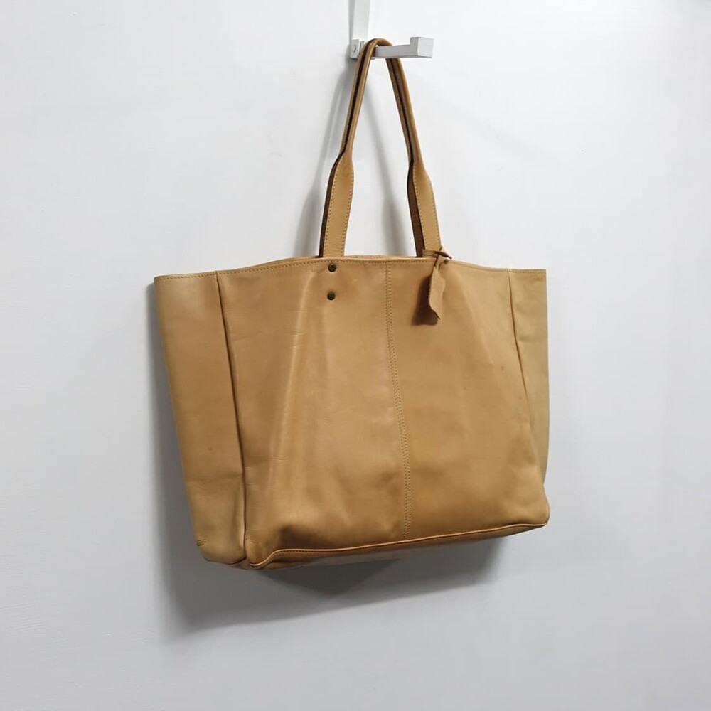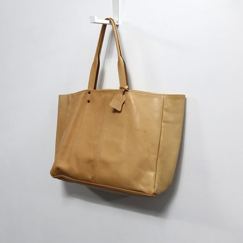 TUSTING X SHIPS 터스팅 쉽스 베이지 레더 통가죽 빅 숄더백