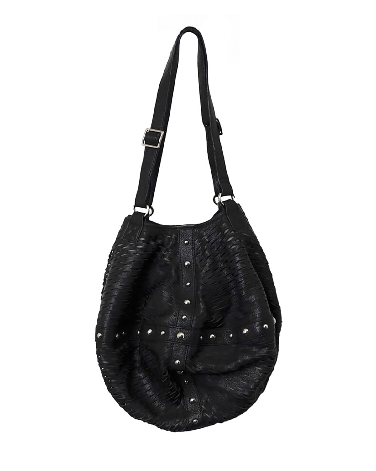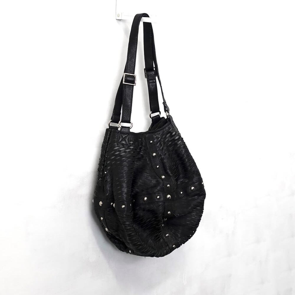 VINTAGE STUDDED LEATHER HOBO SHOULDER BAG