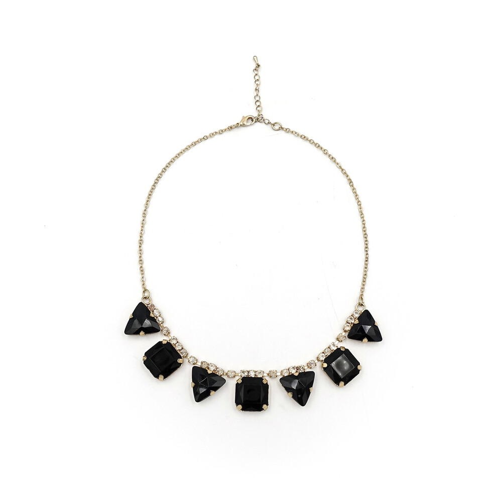VINTAGE ANTIQUE BLACK CRYSTAL CHOKER NECKLACE