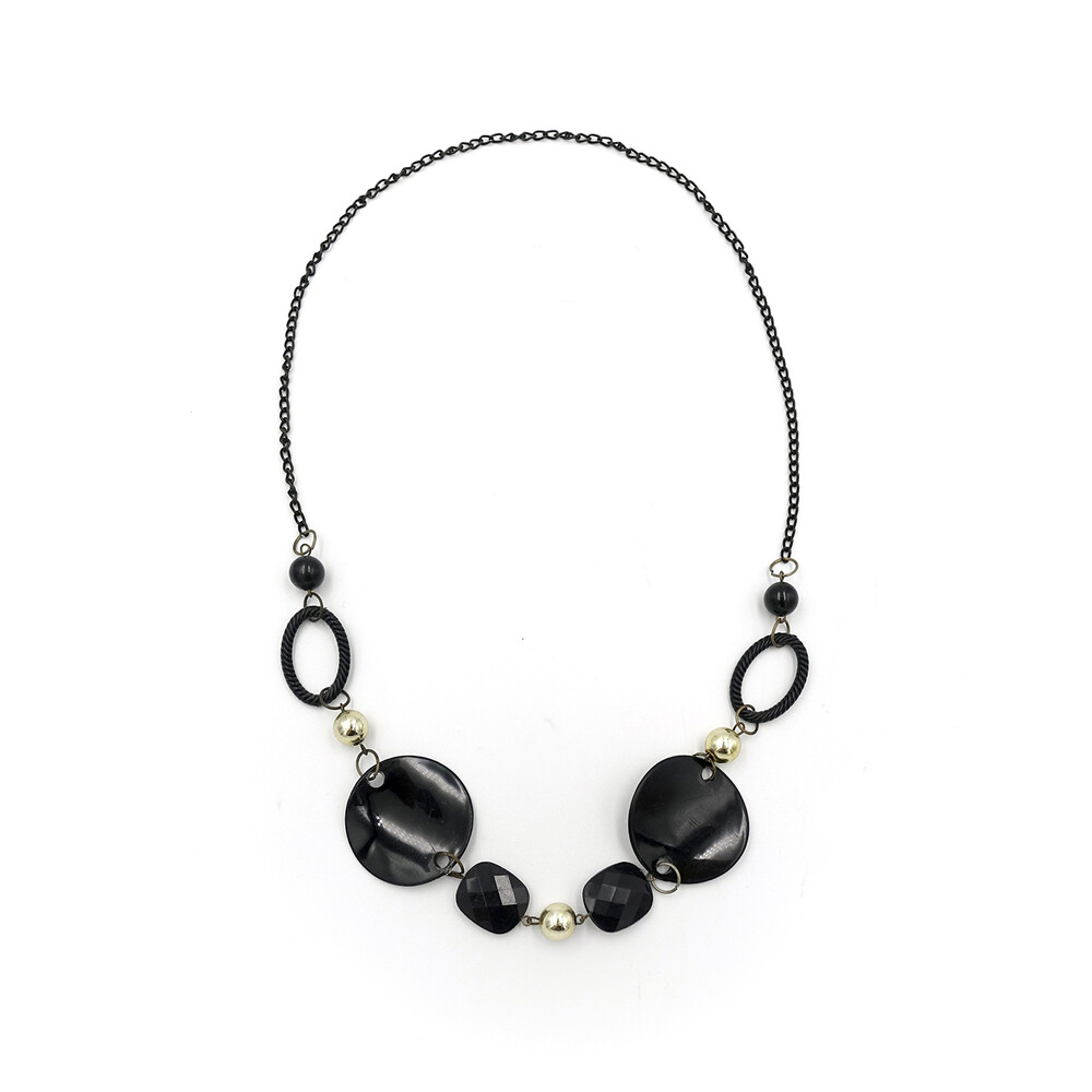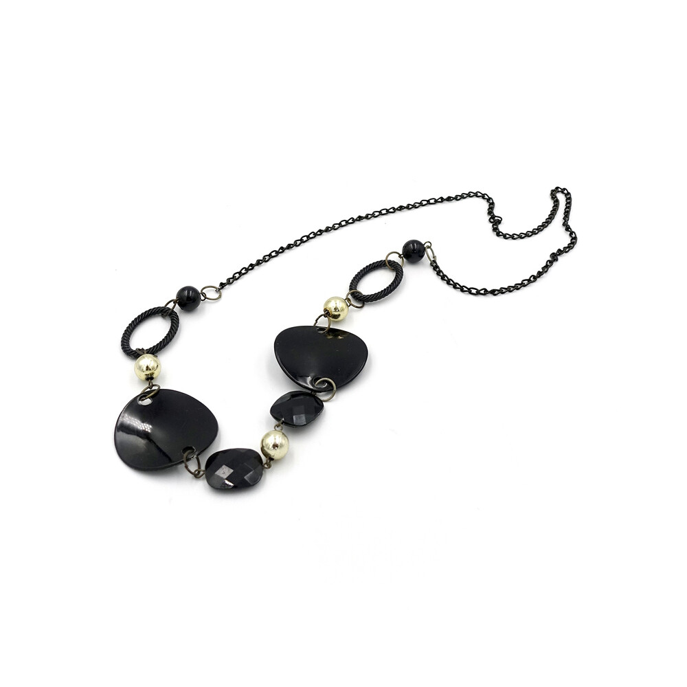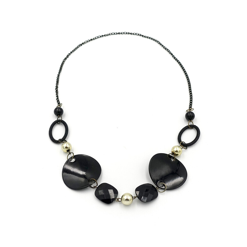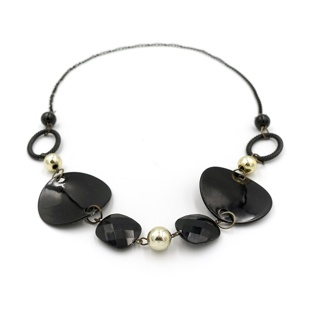 VINTAGE BLACK GLASS BEADS NECKLACE