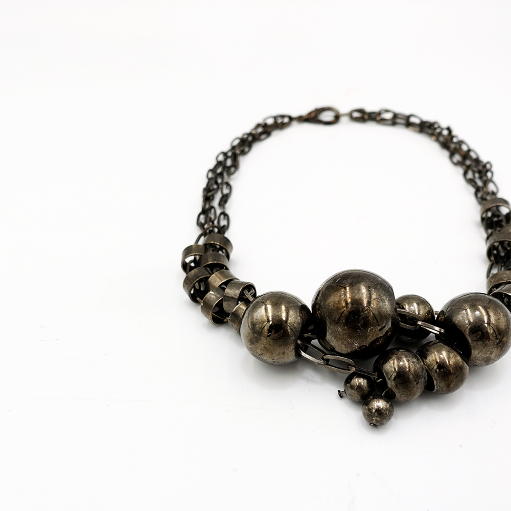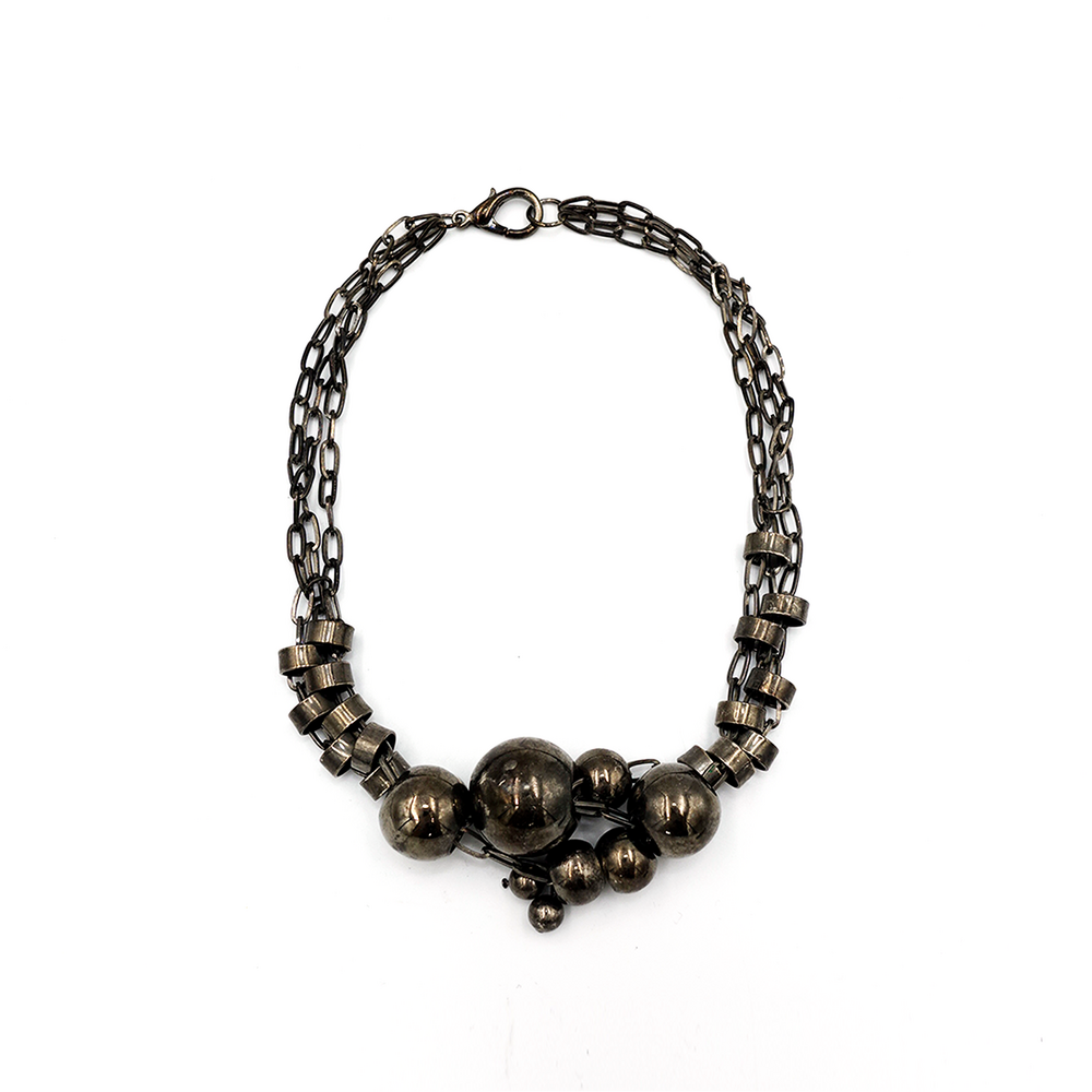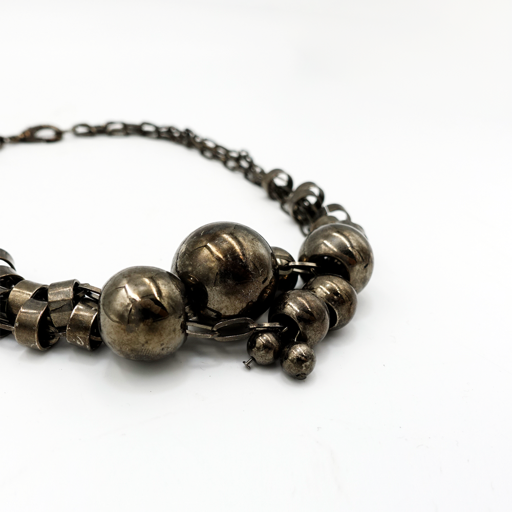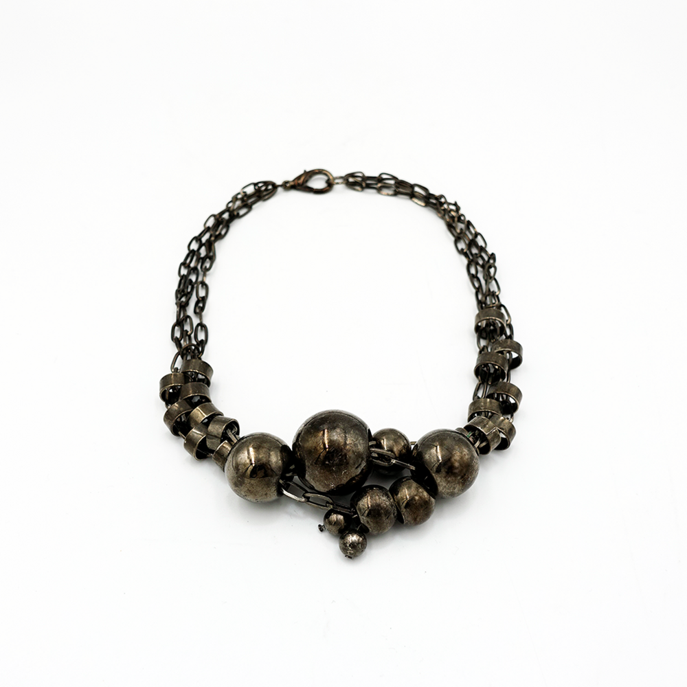 Vintage Gray Shiny Beads Chain Necklace