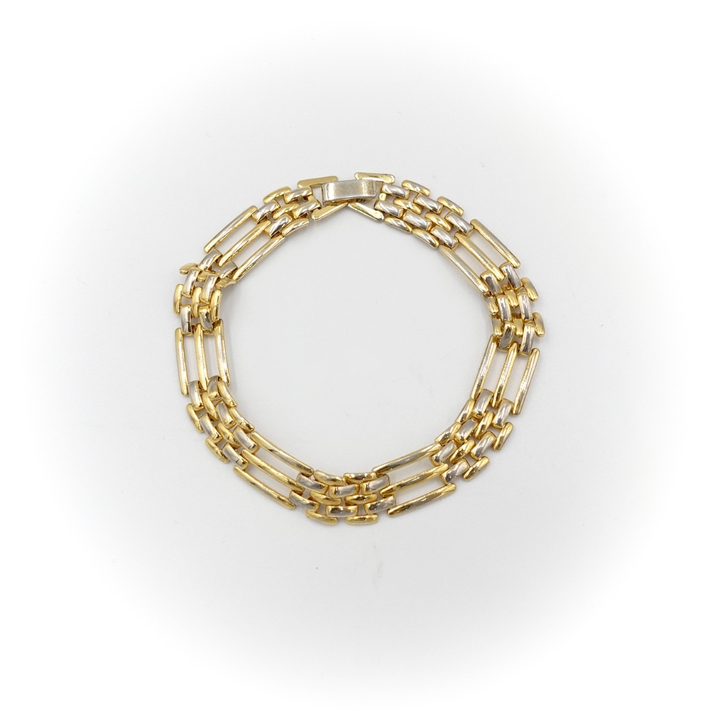 Vintage Metallic Wide Flat Links Chain Bracelet