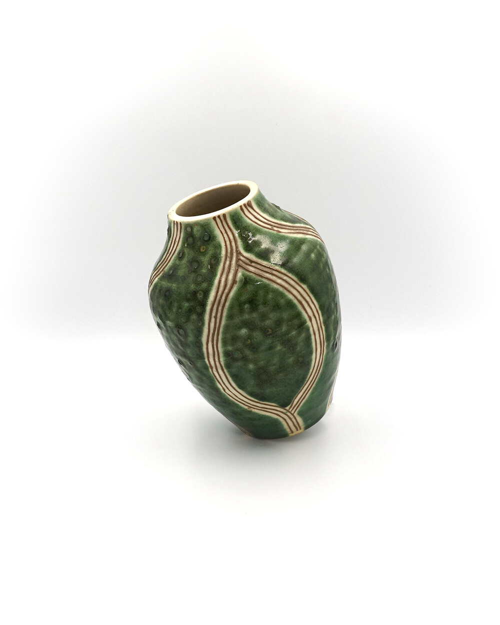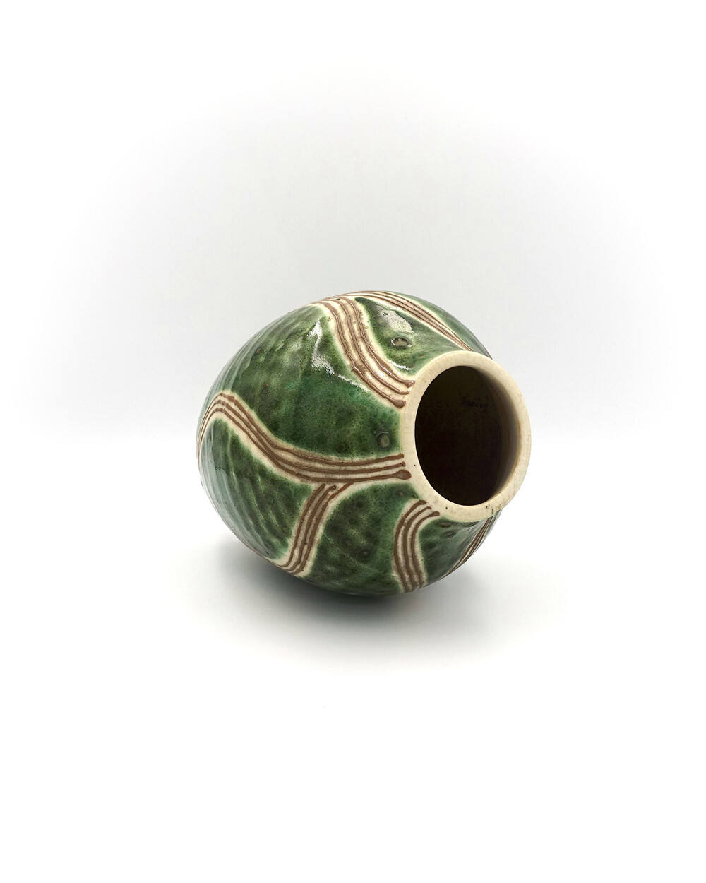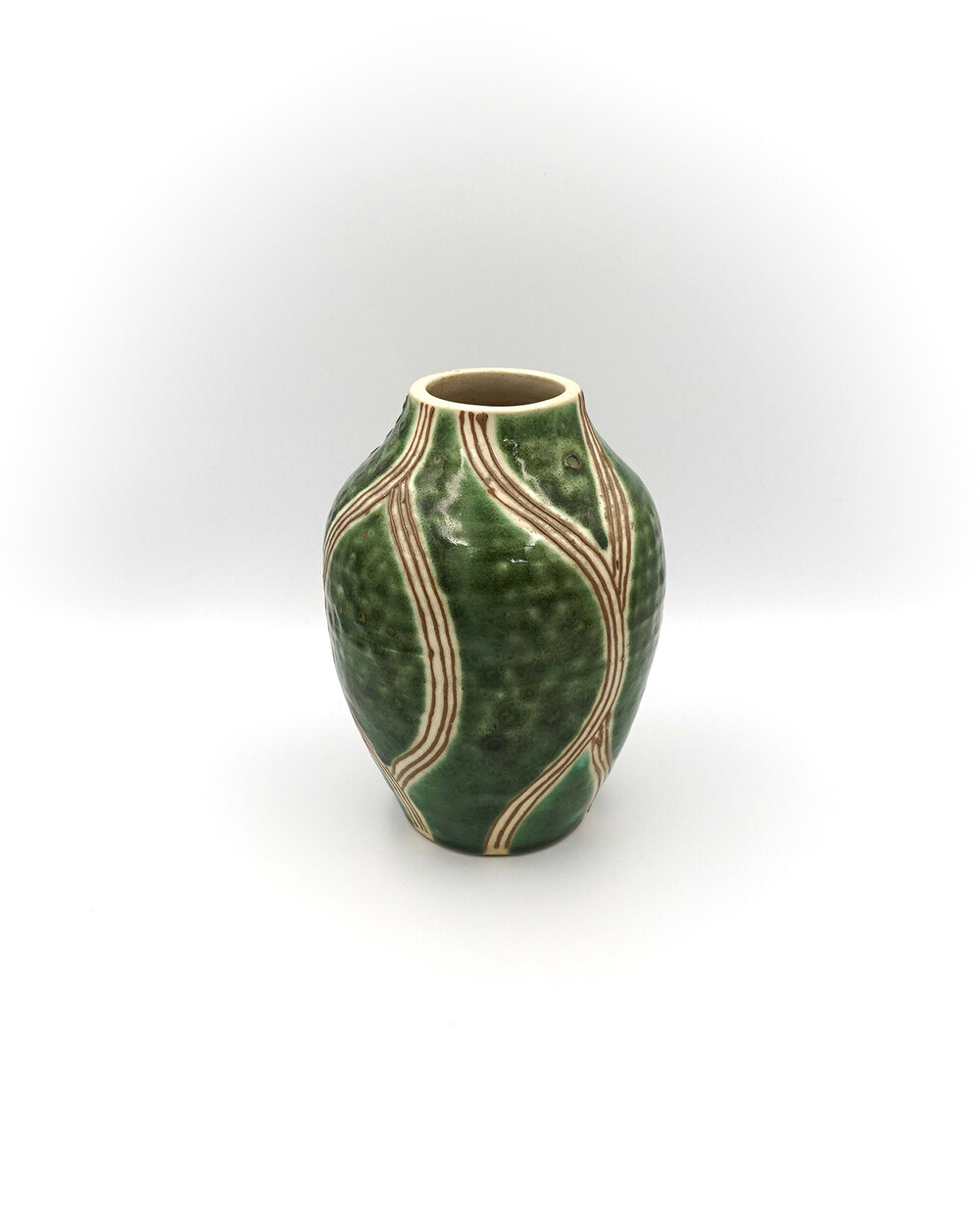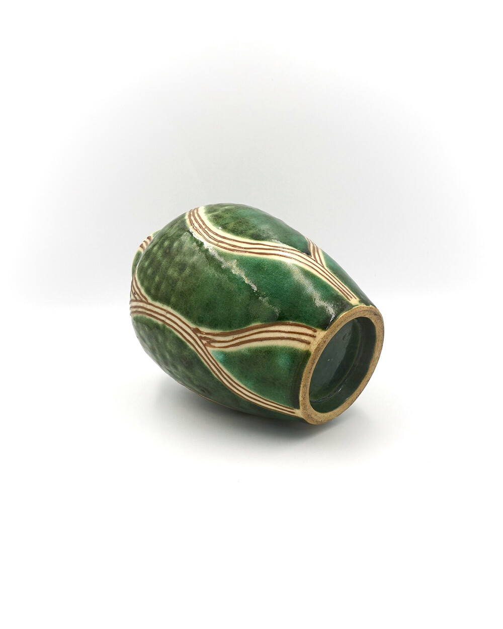 Vintage Japan Oribe Glaze Ceramic Vase Wave Pattern