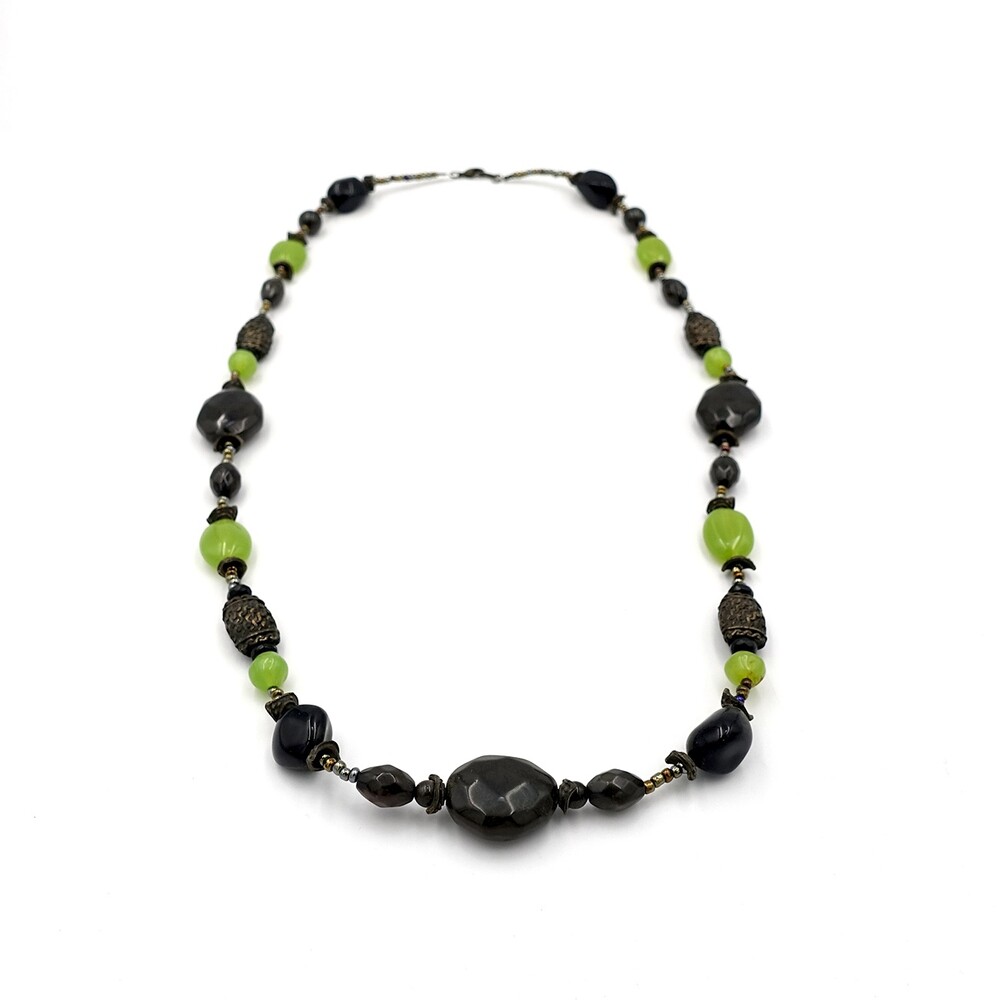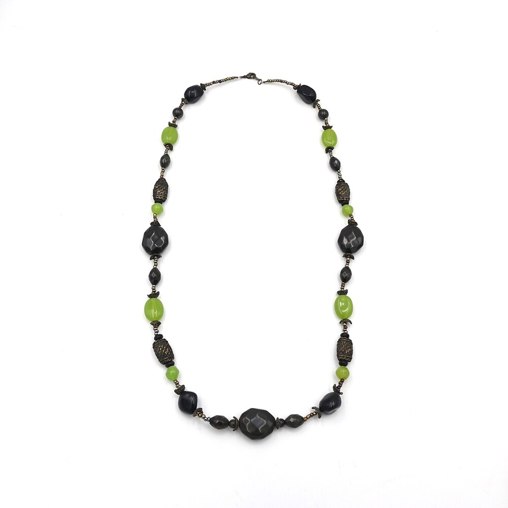 Vintage Oriental Green Stone Onyx Long Necklace