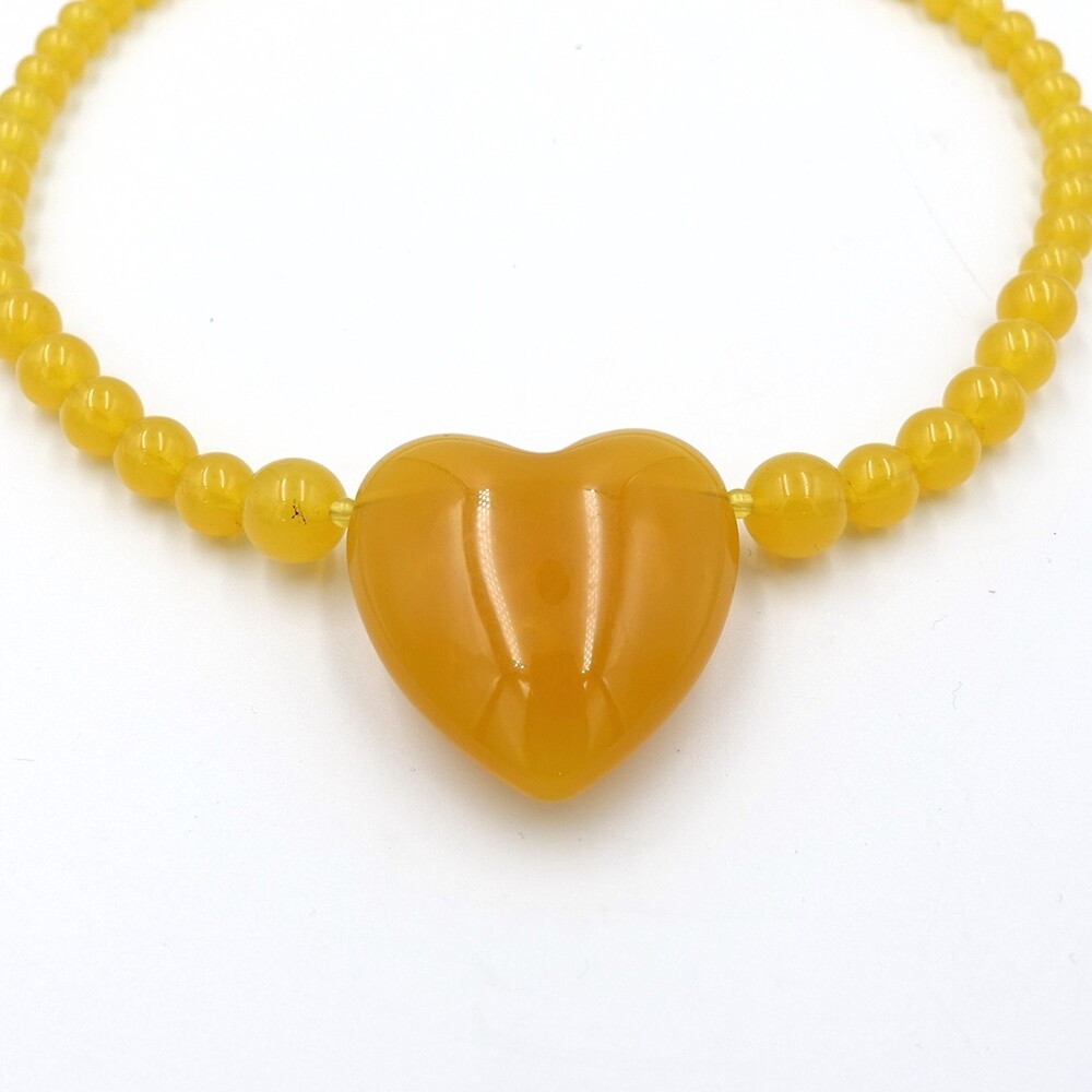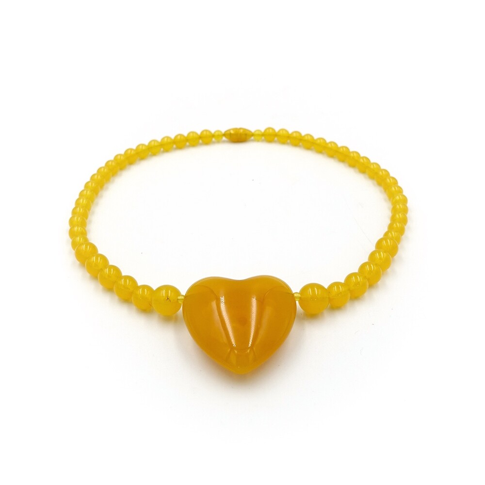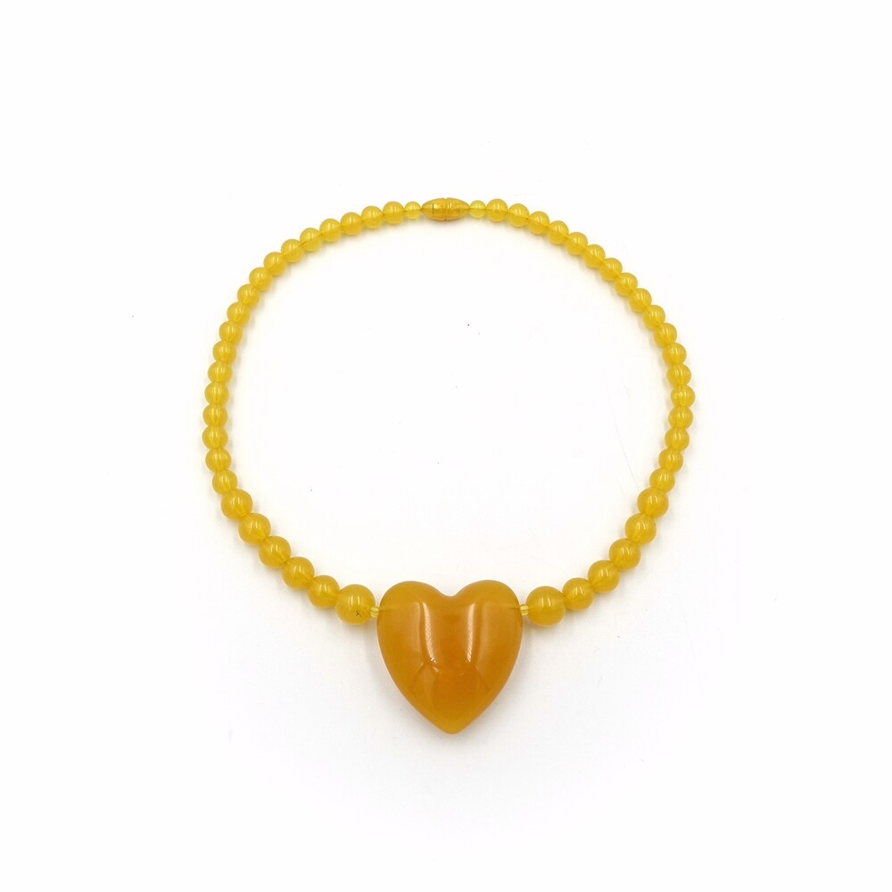 VINTAGE YELLOW PUMPKIN AMBER HEART NECKLACE