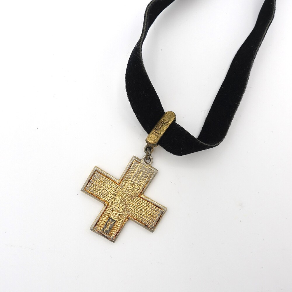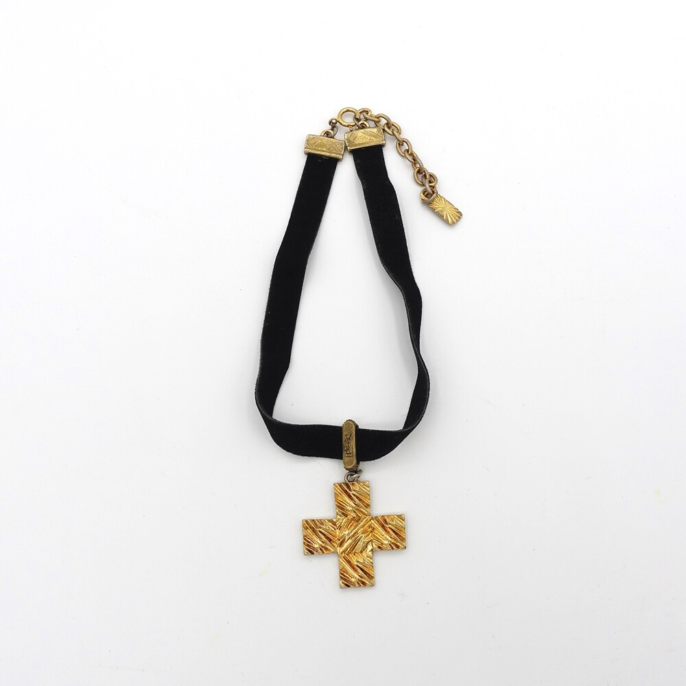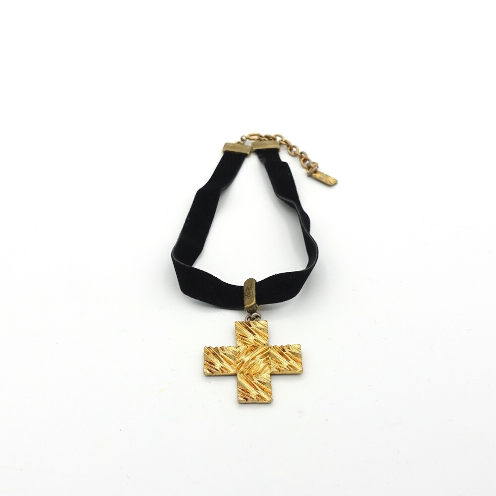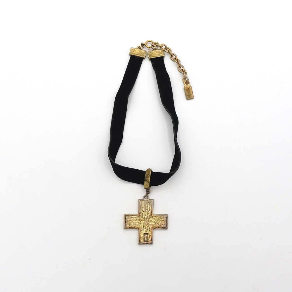 YSL METAL CROSS PENDANT CHOKER NECKLACE