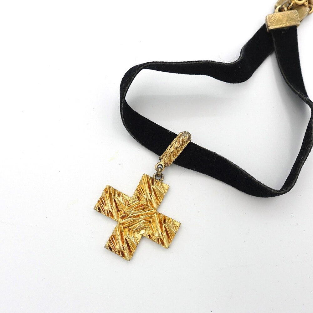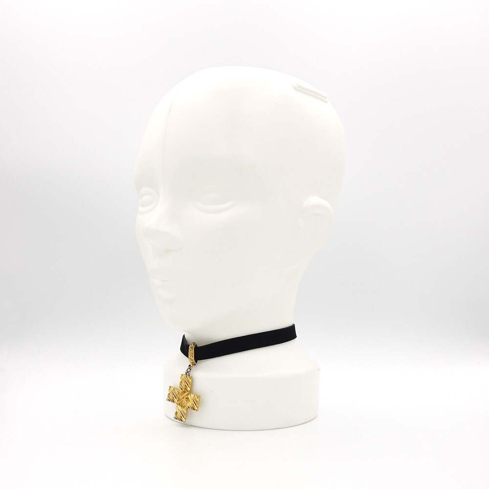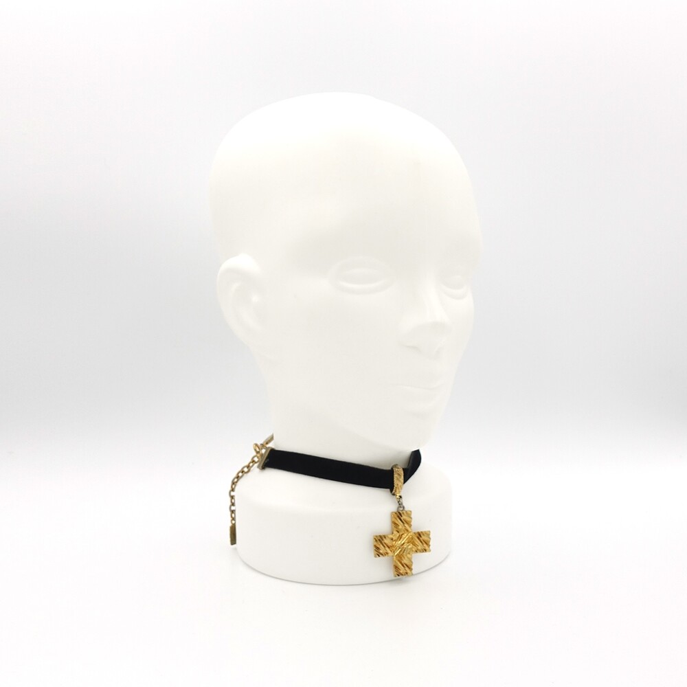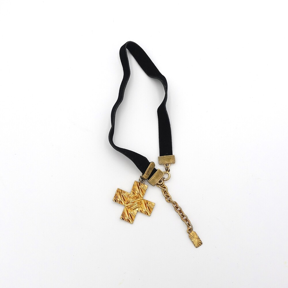YSL METAL CROSS PENDANT CHOKER NECKLACE